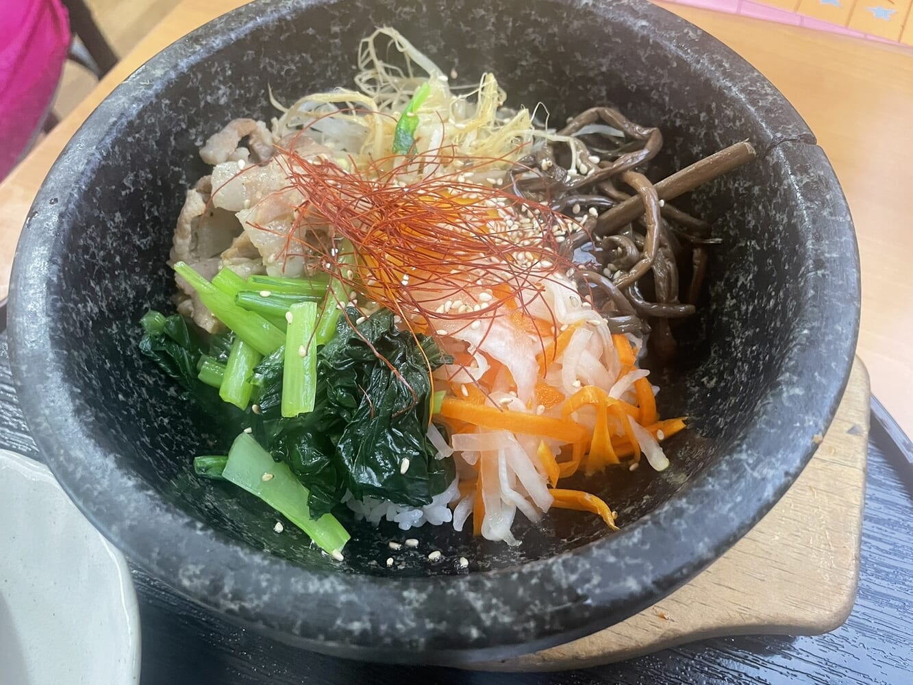 今日は何にしようかな、と悩みましたが、最近野菜があまりとれていないことが気になっていたので、野菜をたっぷりとるべく石焼ビビンバに決定!
