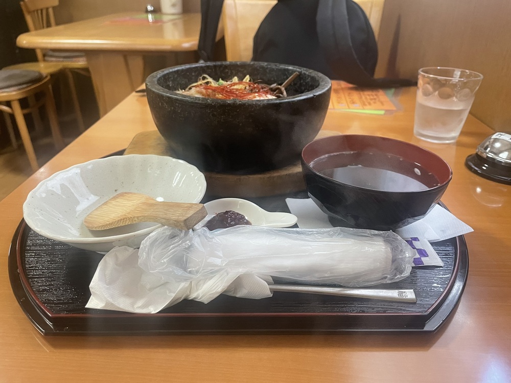 ビビンバは混ぜれば混ぜるほどおいしくなるといいますが、本当ですよね。さらに石焼なので食べすすめていくうちにおこげができて、それもまたおいしい。