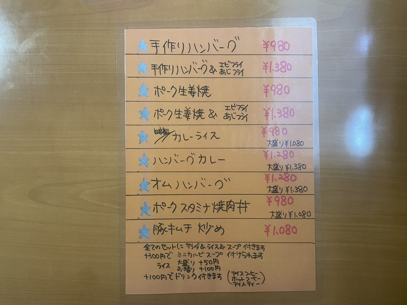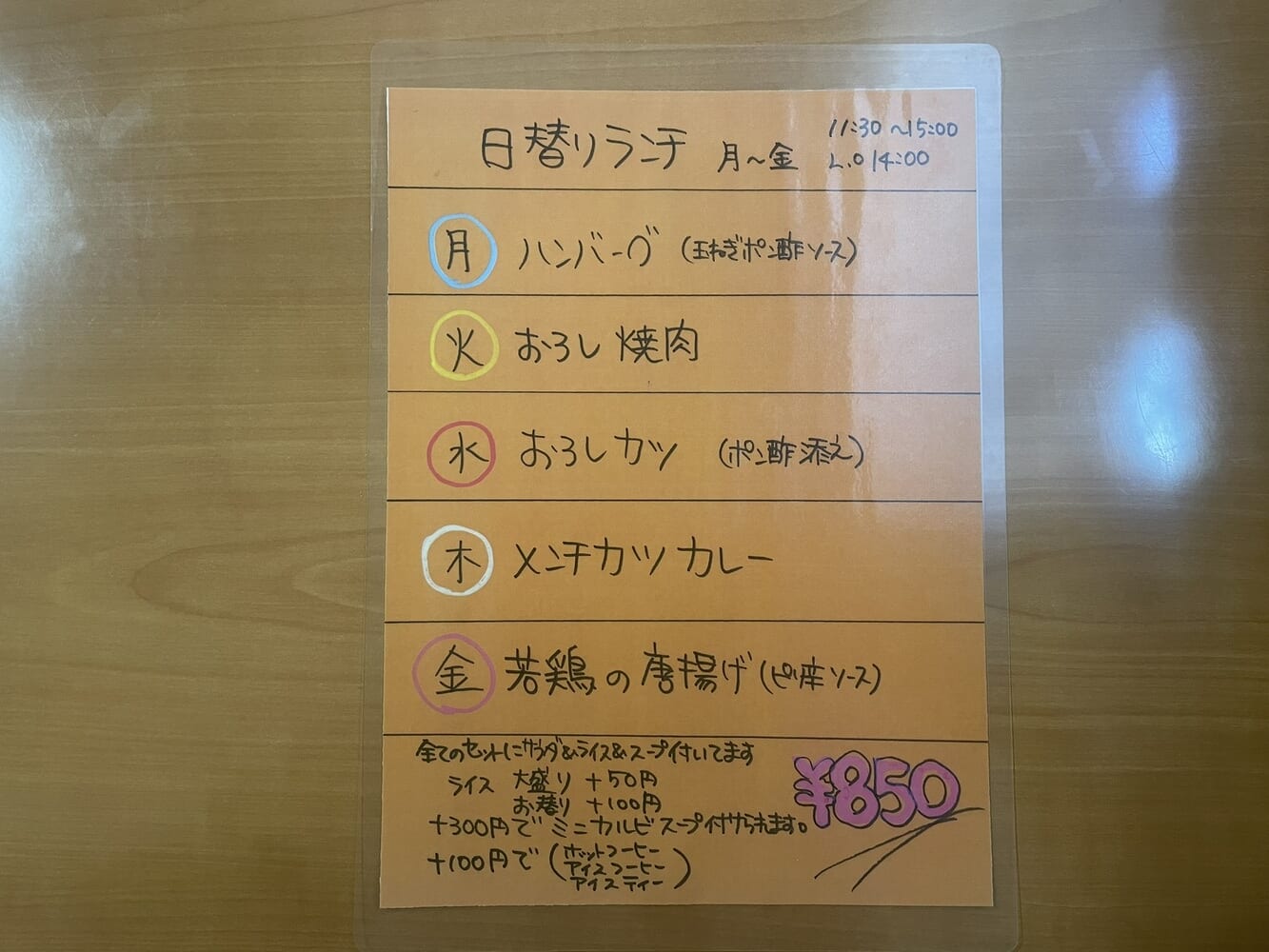 こちらが日替わりランチのメニュー。
