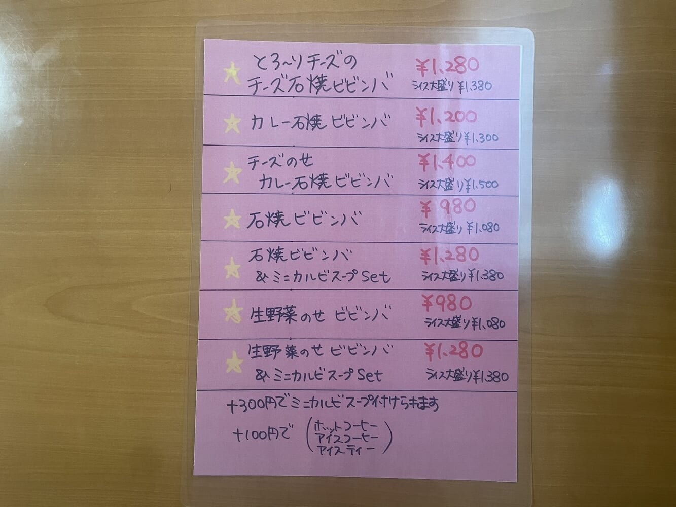 プラス300円でカルビスープがつけられますし、プラス100円でドリンクセットにもなります。