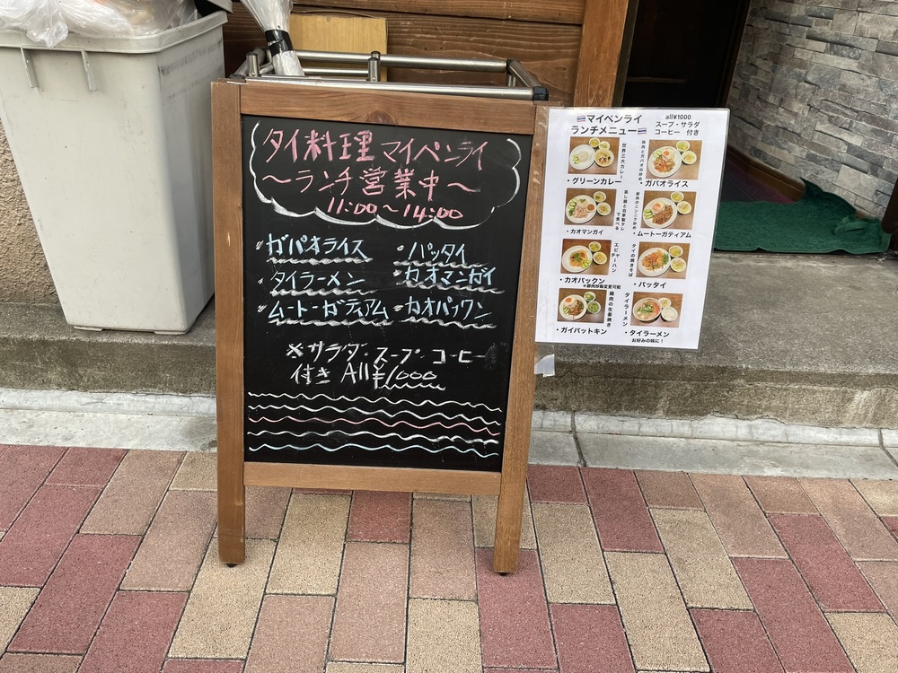 お店の前には、ランチメニューが記載されている黒板とテイクアウト用メニューが。