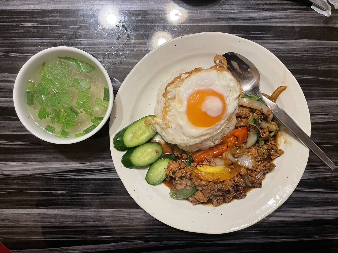 見た目通りがっつりしたお味。ニンニクとナンプラーがしっかり効いています。