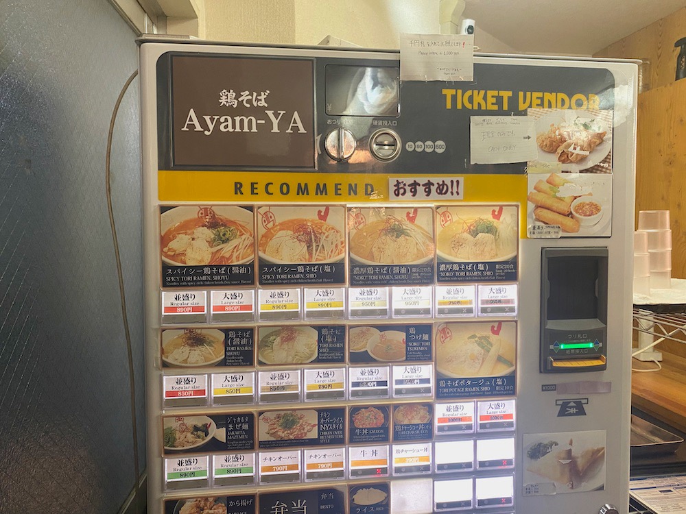 また、ハラル認証店とだけあって券売機には英語表記があり、イスラム系とみられる外国人のお客さんもいらっしゃいました。豚やアルコールはいっさい使用していないそうです。ムスリムの方はもちろんですが、鶏やお酒にアレルギーがあったり苦手な方も安心ですね。ラーメンがおいしいだけでなく、イスラム教について知ったり考えたりするきっかけにもなるお店だと思います。