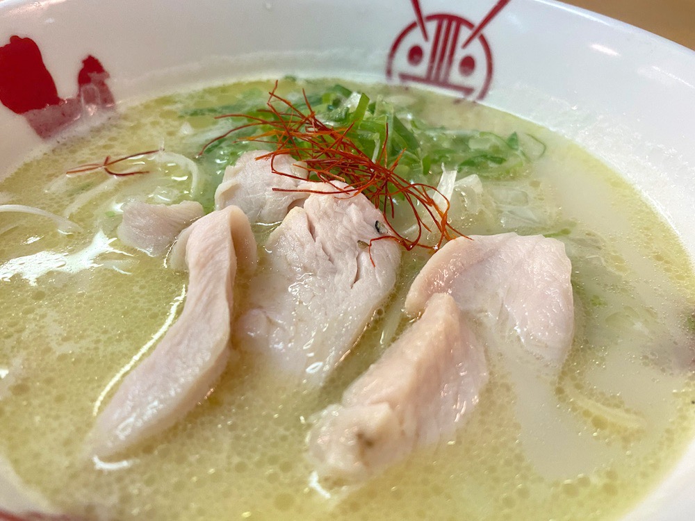 キラキラ光るつややかなスープがとってもおいしそう!具材はシンプルに、ぷりぷりの鶏とたっぷりのネギがのっていました。そして器がとってもかわいい!まるで両手を大きく広げて、「どうぞ召し上がれ〜!」と言われているかのようで、ほっこりしました。