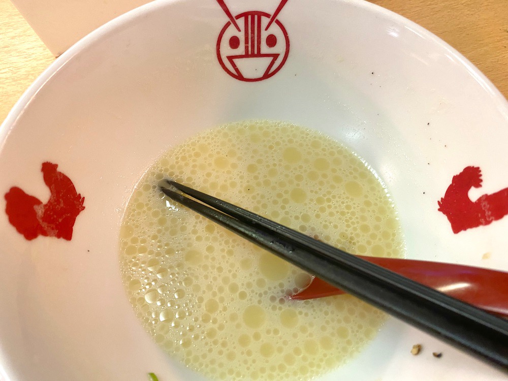 食べおわってどんぶりをみると、手のひらに見えていた絵は鶏の形をしていました!細部までおちゃめなところにお店のこだわりを感じます。