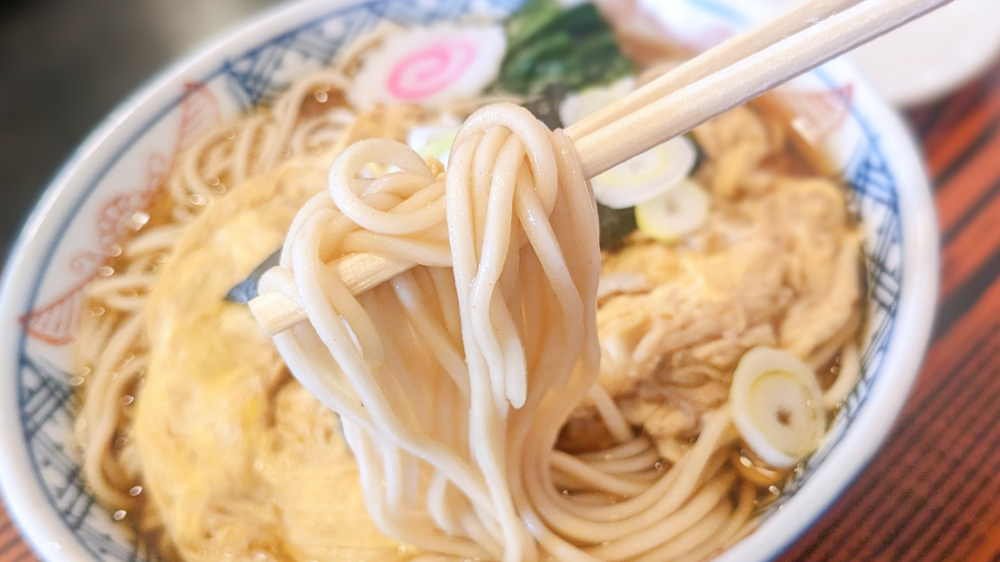 月見蕎麦はよく見かけますが、玉子とじはめずらしいですよね。