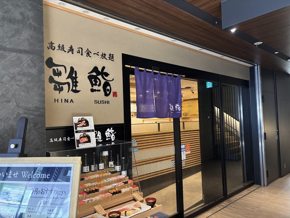 今回、ご紹介する「高級鮨食べ放題 雛鮨」はJR上野駅の不忍口から徒歩約1分という駅ちか。上野の森さくらテラス2Fの一番奥にあります。