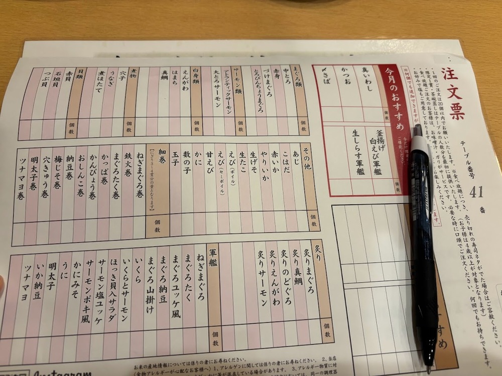 わさび抜きとありの用紙があり、それぞれの用紙を選んで注文します。