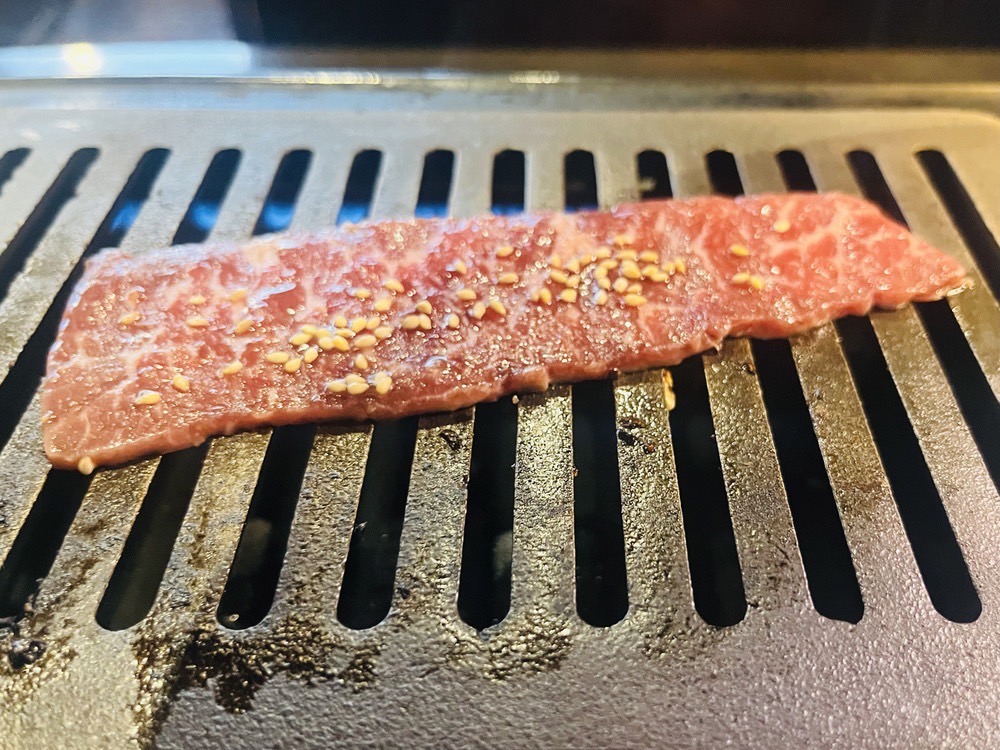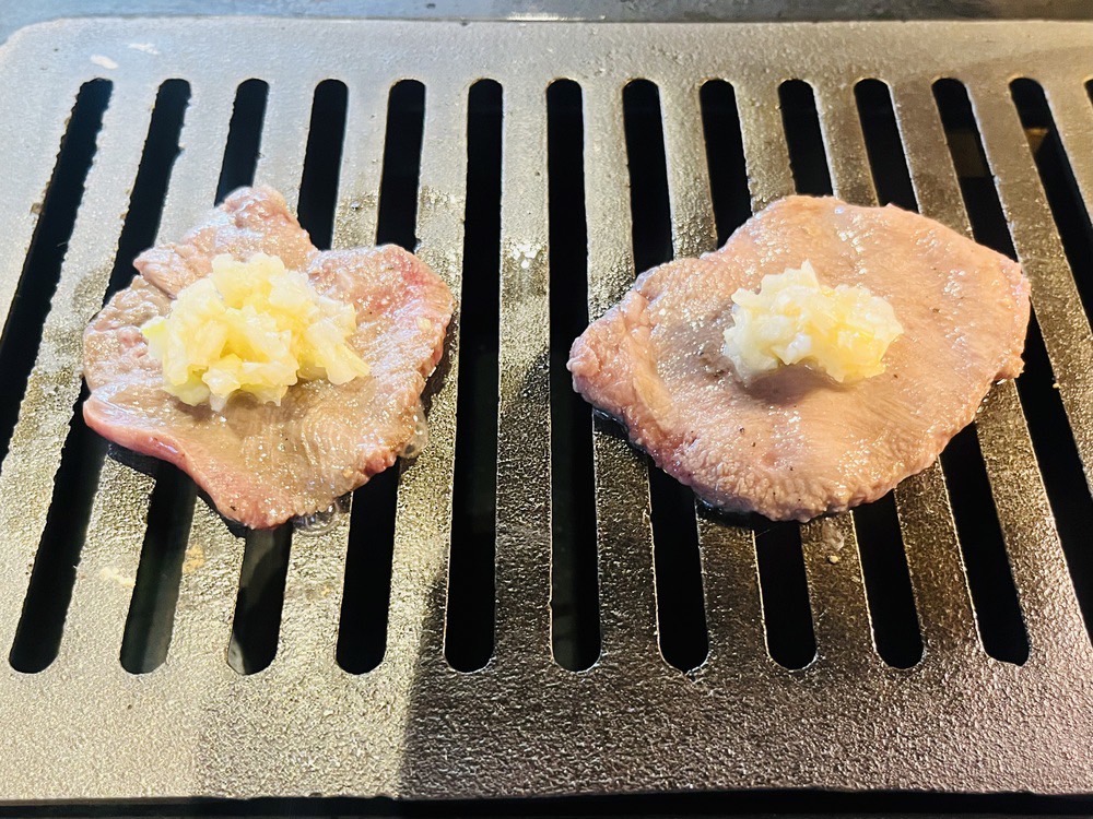 店員さんから、ネギだれをのせて焼くように教えていただきました。焼いているときのビジュアルの良さが100点ですよね♩