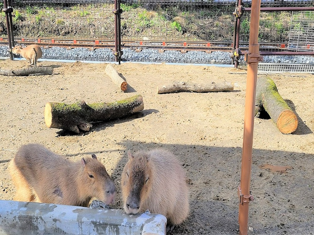 カピバラがいるエリアは、ほのぼのとしていて見ているだけでも笑顔になれます。