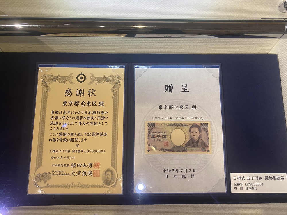 一葉記念館には、最後に発行された5000円札が展示されています。