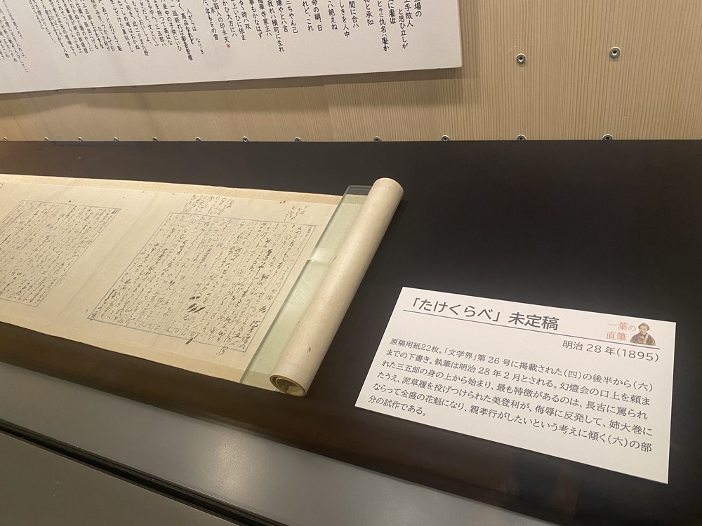 特別展には、「たけくらべ」の未定稿も展示されていました。