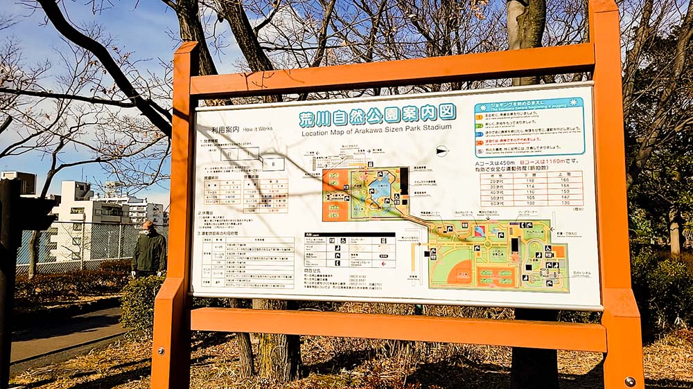 まず目に入るのは「荒川自然公園」の案内図。こんなに広かったっけ?とビックリ。東京ドーム1.5倍の広さで約6万平方メートル以上あるんだとか。ウォーキングやジョギングに最適ですね!