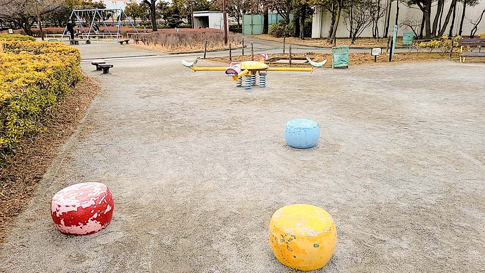 私は寒い冬の時期に訪れましたが、それでも幼稚園生くらいの子どもを連れた家族がたくさん来ていました。遊具が置かれたエリアは数か所に分かれているので、子どもたちは喧嘩せず仲良く使えそうです。私もこのシーソーが大好きでよく乗っていました。懐かしい!
