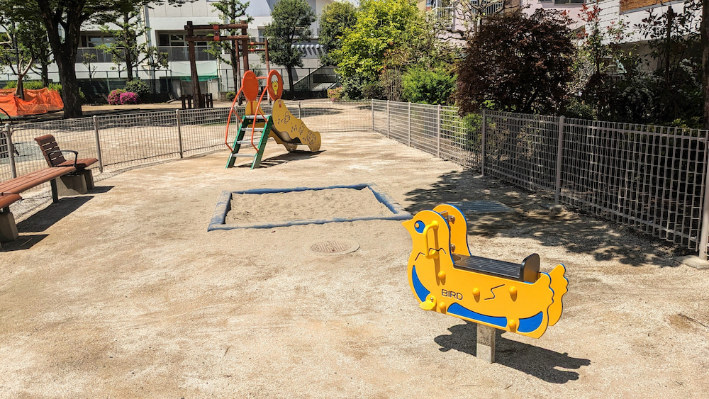 公園の奥には、幼児用の遊具や砂場があるフェンスで囲まれたスペースがありました。