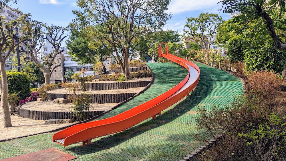 日暮里公園といえば、ローラーすべり台が有名です。ご近所ではローラー公園とも呼ばれるほど。ピカピカになって新登場していました。