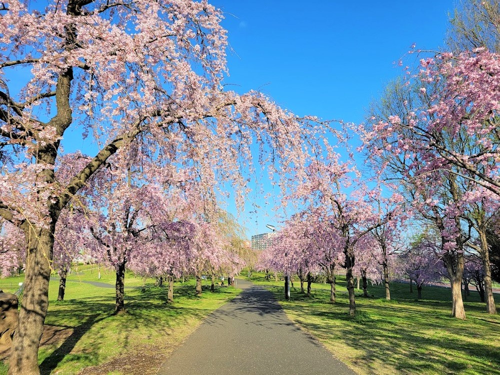 園内には一体何本あるのかな?と思うほど桜の木が植えられています。桜の種類としては、シダレサクラの方が多く植えられている印象でした。調べてみると、園内には257本の桜の木が植えられているんだとか。その圧倒感に魅了されてしまいます。早朝の時間は人が少なく、ゆっくりお花見できちゃいます♪