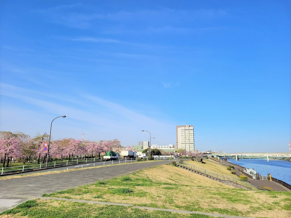 都電荒川線熊野前近辺に住んでいる知り合いに、「熊野前近くにある都立尾久の原公園は、桜がキレイだよ!」と教わりました。なんと隅田川とのコラボレーションも見られるとか。
