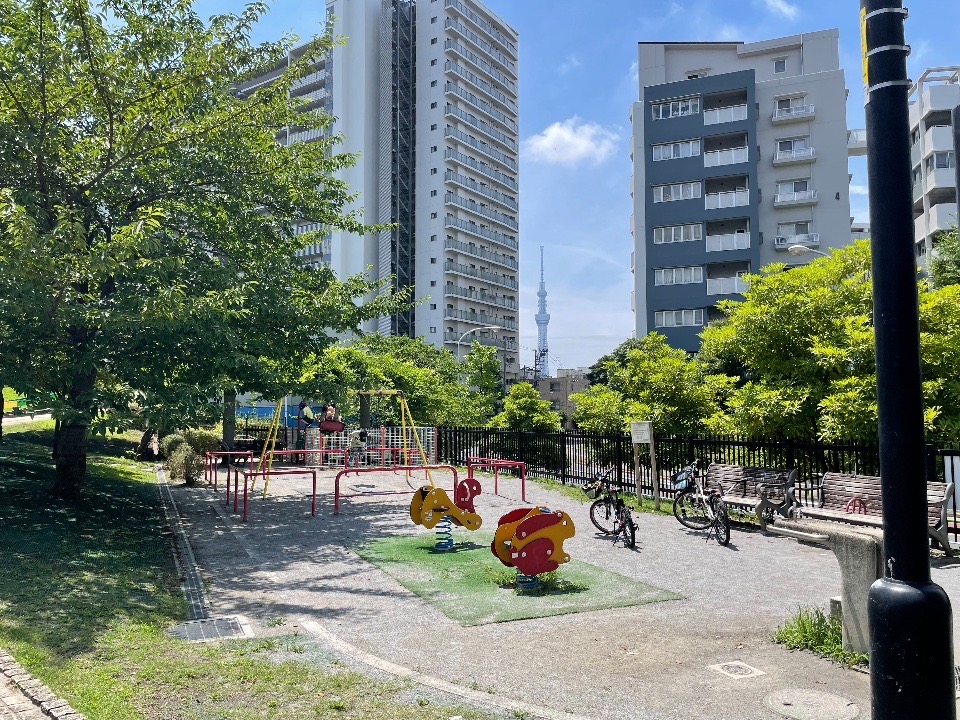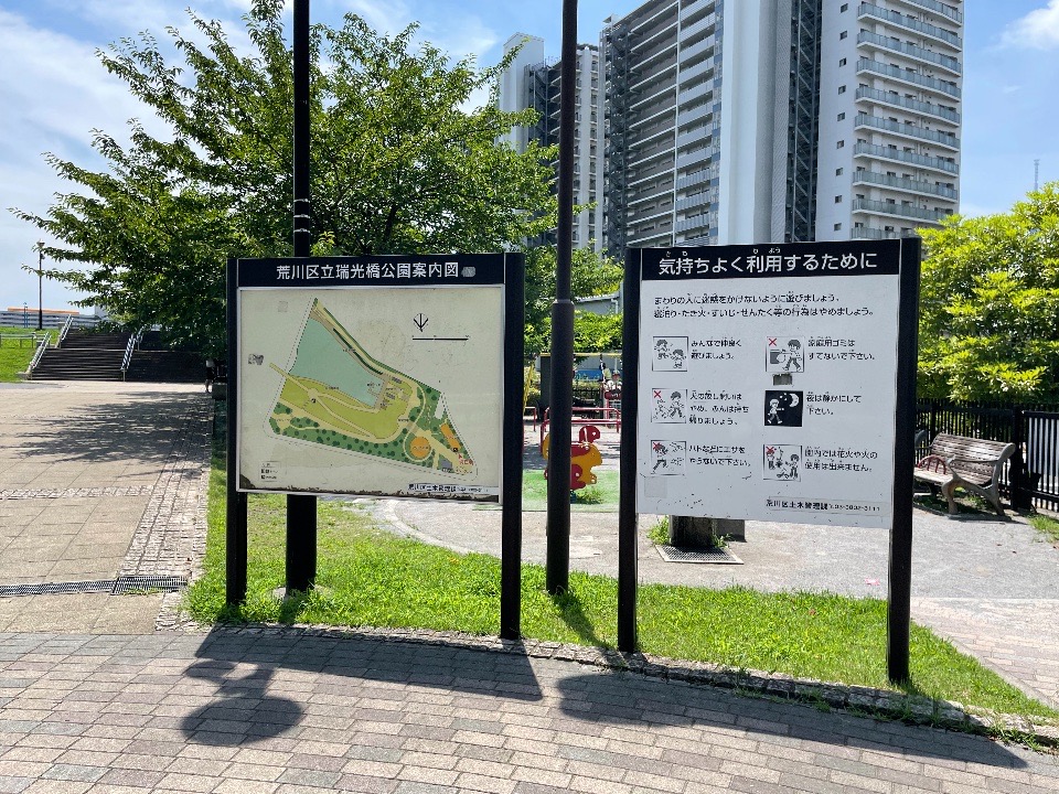 南千住駅から徒歩20分。隅田川に向かって行くと、とある交差点の角に小さな公園があります。それが今回ご紹介する瑞光橋公園です。