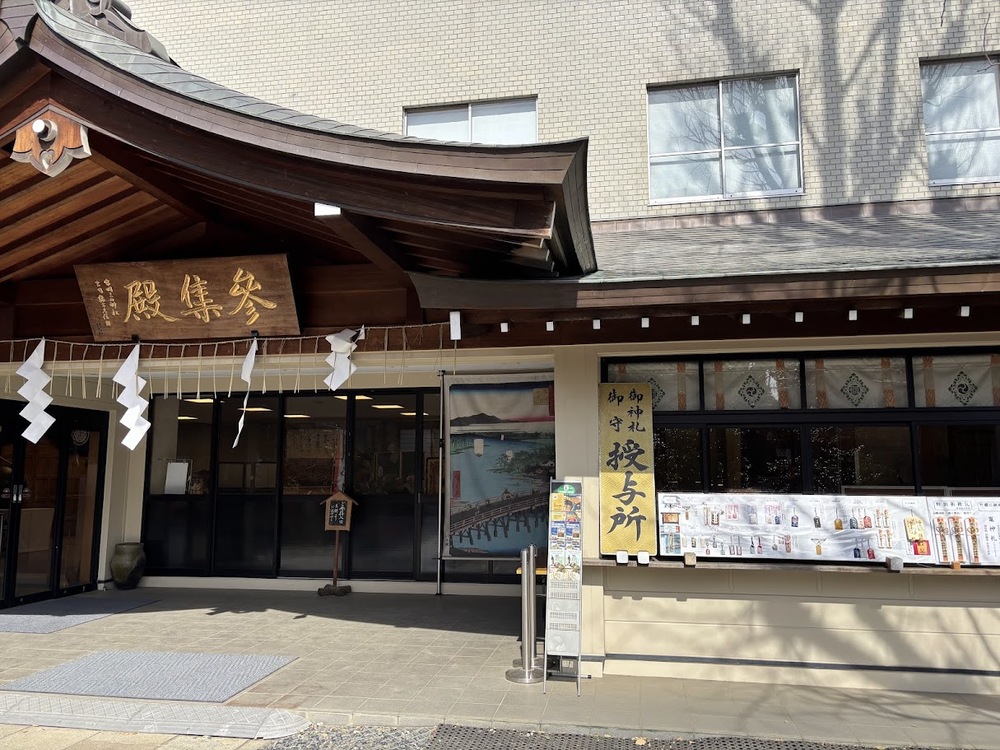 社務所の前には、お守りやお札の見本が展示されており、その種類の多さに目移りしてしまいます。「あのご利益も、このご利益も…!」とつい欲張ってしまいそうです。