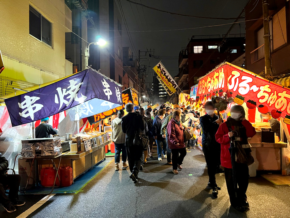神社を拠点に、入谷方面から三ノ輪駅方向まで屋台が数々並びます。