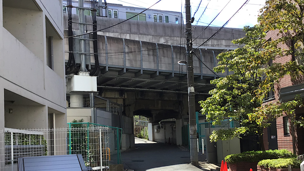 高架下のトンネルに向かって進んでいくと、駅前のにぎわいは遠ざかっていきます。