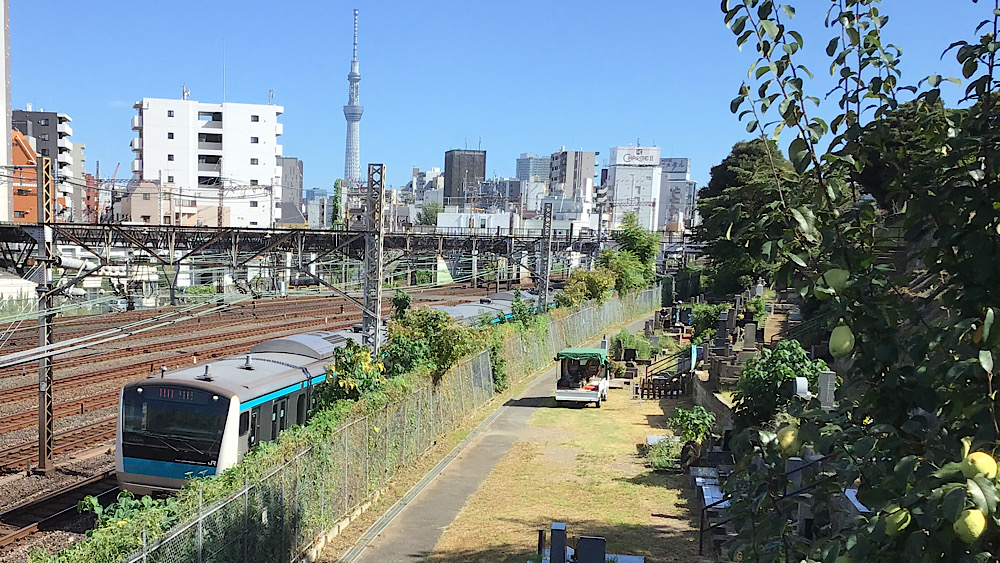 ここまで歩いたルートを地図アプリで振り返ってみると、線路を挟んで3つのお寺の間をぬうようにつなぐ道が浮かび上がってきます。かつての「芋坂」です。