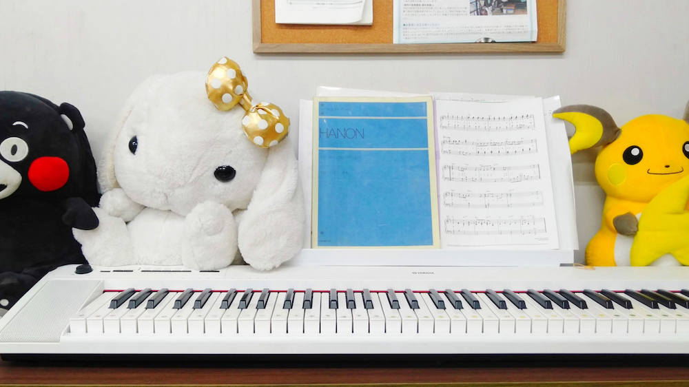 ピアノやぬいぐるみも置いてあり、壁にはカラフルなイラストが掲示されていました。