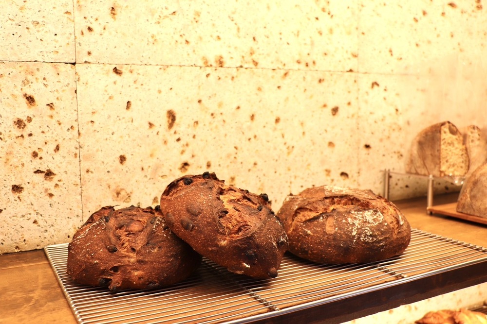 また、オープン当初から人気のカンパーニュもおすすめです。低温でじっくり熟成させた生地はもちっとした食感が特徴で、ライ麦やサングリアなどさまざまな種類が並びます。1/4サイズから購入できるため、いろいろな味を少しずつ楽しめるのも魅力です。