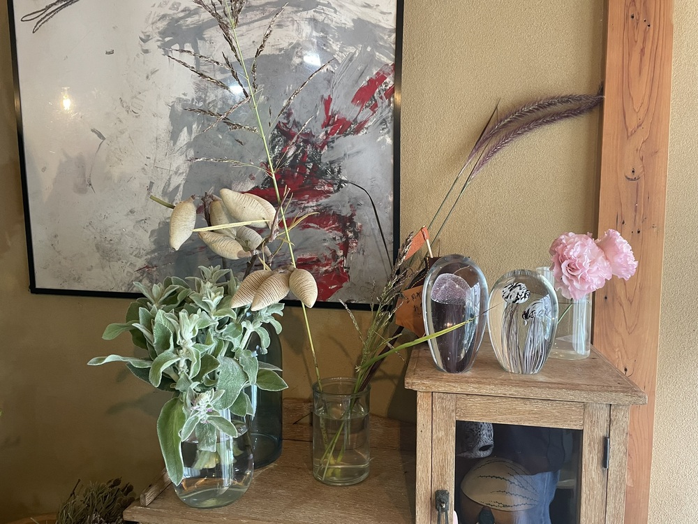 「reeflow」に置かれているお花と花瓶の組み合わせの妙は格別です。鉢植えもなんでこんなにおしゃれなの。松ぼっくりって、かごに入れるとこんなにかわいいんだ…とか、一見無造作に見えるのにどうやったっておしゃれ感が漂います。