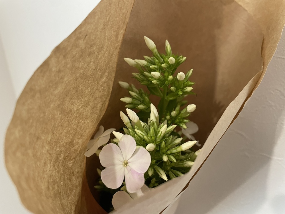 この日私が選んだお花はロベリア科のお花。白と緑で迷いましたが、リエさんの「お花が咲くとかわいいよ~」というお言葉により、白い花が咲くほうをお持ち帰りすることにしました。2本で600円也。現金のみのお支払いとなります。
