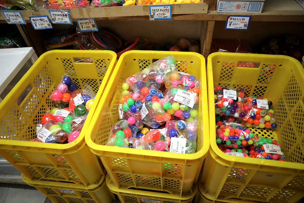 営業用の仕入れや縁日で販売するために購入するお客さんのほか、最近は学校や会社のイベントで配るための景品やノベルティ用に購入していくお客さんが多いとのこと。