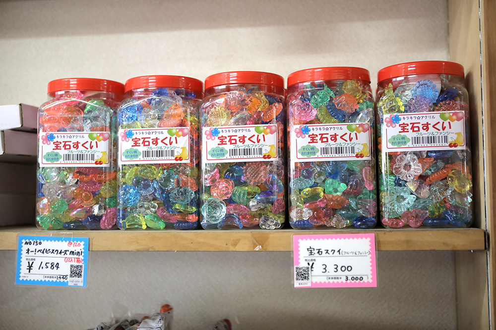 ひとつひとつのバラ売りはしていませんが、基本的に価格は駄菓子は20%オフ、おもちゃは25%オフと問屋さんならではのリーズナブルなプライス。