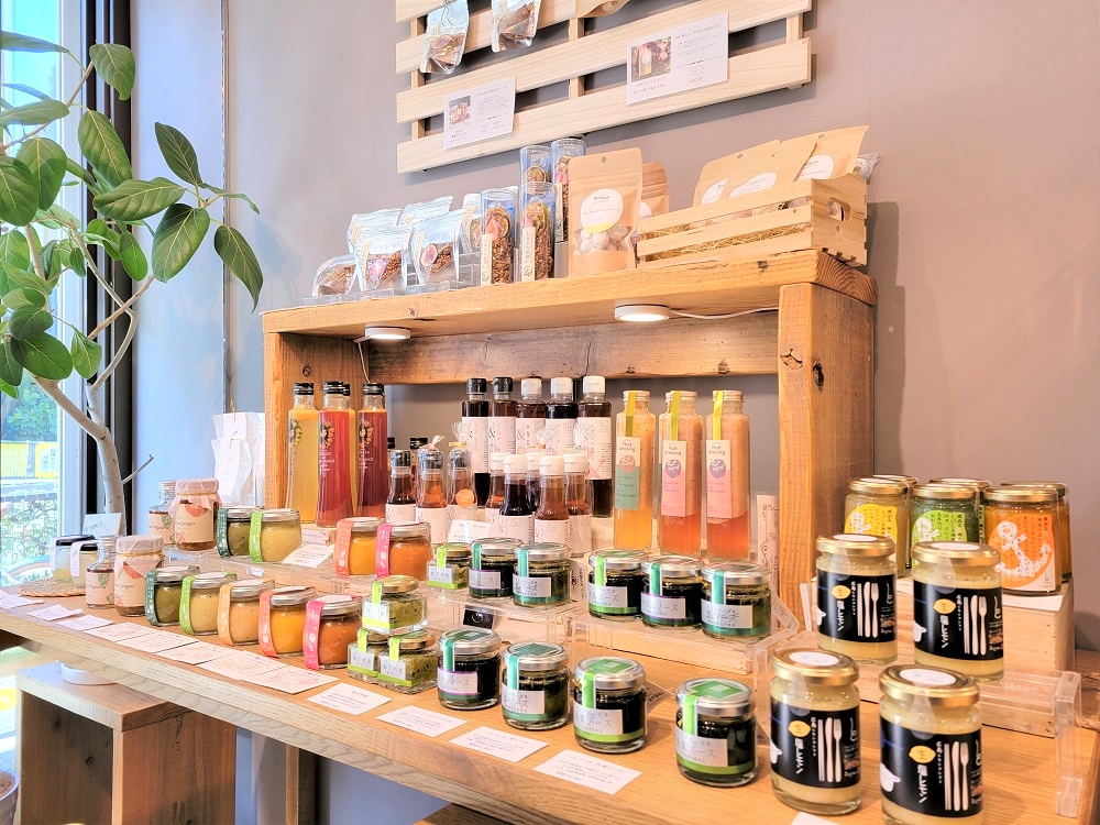 お店に入ってまず気になったのは色とりどりの調味料たち。オシャレにレイアウトされていてステキです!オーガニック商品や無添加商品などの自然派食品を取り揃えているそうです。