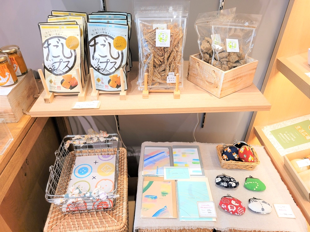 なんとおつまみもありました。鱚の骨せんべいや、おからとおだしを使った「だしップス」は健康的なお菓子ですね〜。お酒を飲む方にも良さそう!