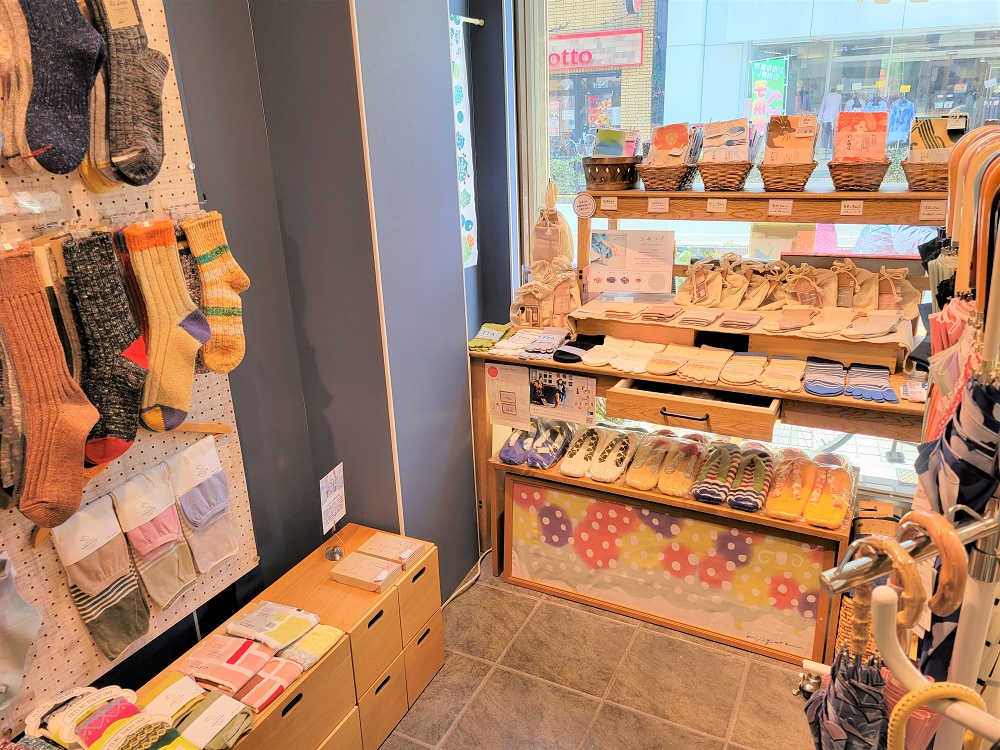 冬のシーズンに伺ったのですが、職人さんが丁寧に作った温かそうな靴下や手ぬぐい商品もありました。