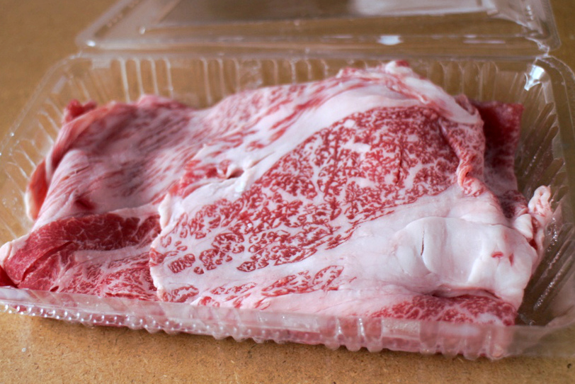 きりたての和牛切り落としが、なんと言ってもお買い得です。相場によって価格が変わるそうですが、この日は200グラム1100円で購入しました。