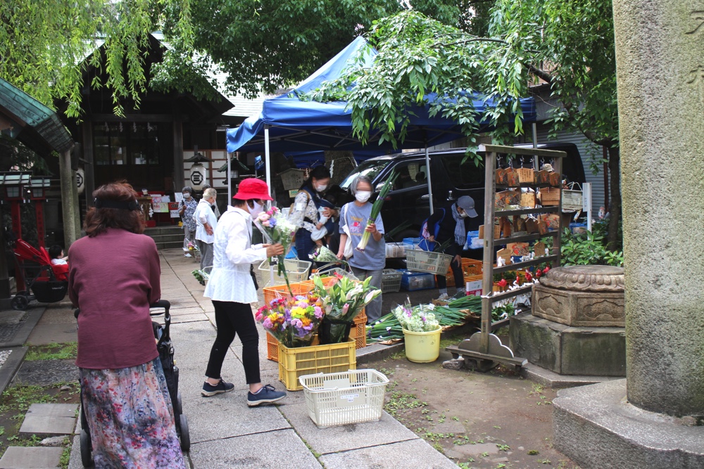入谷駅からほど近い下谷の三島神社では、毎月第4水曜日に福島県矢祭町から来る「もったいない市場」が開催されています。