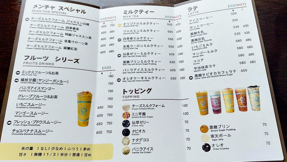 綿茶ではタピオカミルクティーはもちろん、さまざまな飲み物やスイーツがあります。