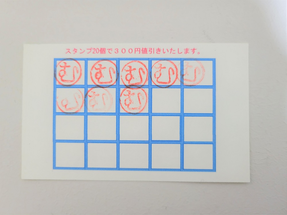 お買い上げ300円で1個スタンプがもらえる専用のスタンプカードもあります。20個たまると300円引きしてくれるそうなので、スタンプをためて、また商品を買いに来るたのしみもあります♪