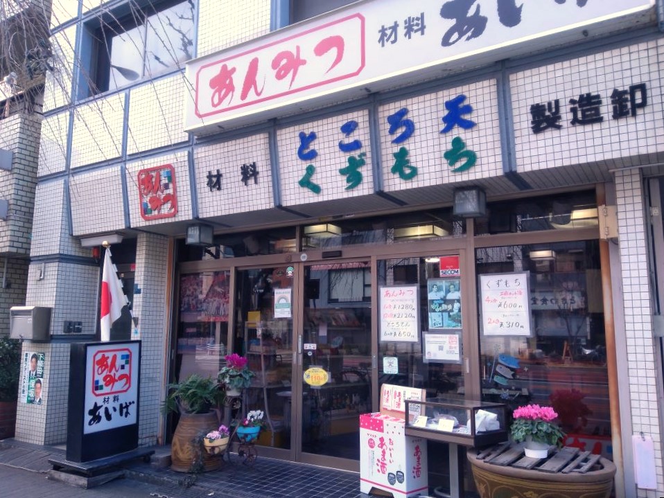 今回は、入谷エリアの中でも大きな道路の1つ、言問通り沿いの寒天屋さんに伺いました。「あんみつ あいば(会場商店)」さんです。