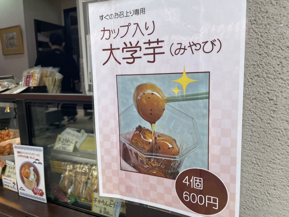 食べ歩き用にカップ入りの大学芋も準備されています。