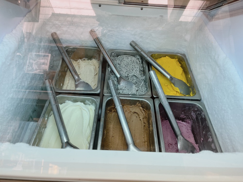 販売のお姉さんに聞くと、アイスの種類は日によって違い、だいたい6種類は置いてあるとのこと。