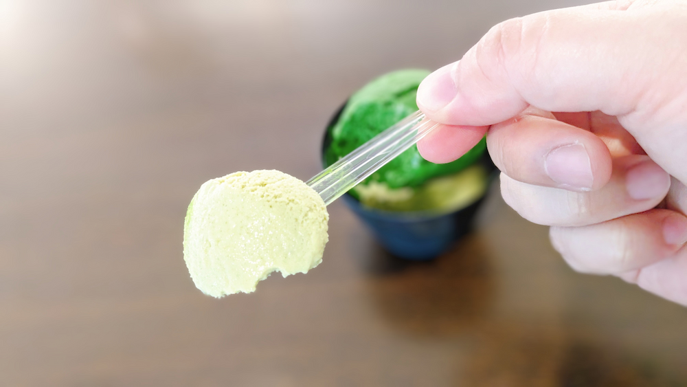 ジェラートは静岡県の抹茶スイーツ専門店「ななや」とのコラボ商品なんだとか。老舗のお茶屋さんとお茶の本場、静岡のスイーツ屋さんが作ったジェラート、果たしてどんな味がするのでしょうか。