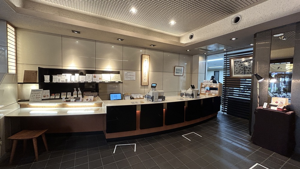 店内はとても静かで落ちついた雰囲気です。商品の陳列棚とカウンター、宅配発送用の伝票の記入机などがあります。