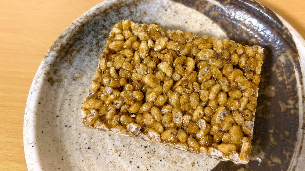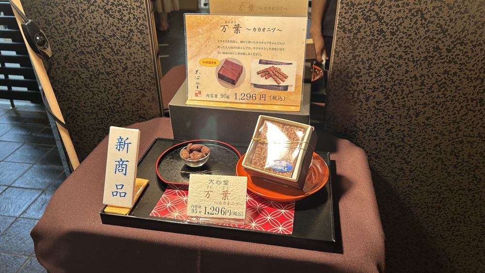 古代のほかにも、きなこおこし、松の葉(ココアとアーモンド味)、落花棒(ピーナッツ味)や、期間限定のおこしもあります。訪問したときは「万葉」という、カカオニブを使ったスティック状のおしゃれなおこしがありました。
