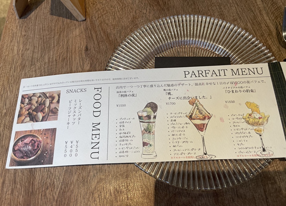 日々の喧騒から離れて、季節感あふれるパフェと共に、一日の締めくくりを楽しんでみたり。そんな特別な時間を「夜パフェ専門店Vigo 蔵前店」で体験してみてはいかがでしょうか。